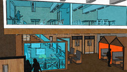 Brief - The design studio needs an 'enclosure' for students and staff alike to hold informal meetings and presentations. In order to understand the studio space you will need to undertake a sight survey of the area you intend to use. For the enclosure, it would be beneficial if it could also house magazines and small models. The enclosure does not necessarily need to block out noise, therefore varying degrees of transparency, holes, gaps etc should be considered.
